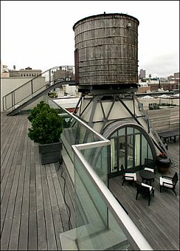 Ale najlepšie na celom megaapartáne je viacposchodová terasa, ktorá obklopuje celý byt a zachránený vodný tank (water tower), ktorá sa vypína nad hlavnou spálňou. No uznajte, celkom štýlové bývanie za 22 miliónov dolárov.