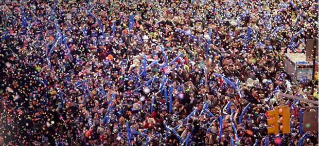 Tento rok sa na oslavách príchodu Nového roku na Times Square zúčastnilo podľa odhadov organizátorov vyše milióna divákov a to aj napriek zasneženému počasiu. Nový rok však tentoraz neprivítala len známa guľa, ale aj dve tony konfiet, ktoré padali z neba.